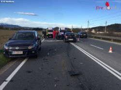 Oö: Verkehrsunfall auf der B1 in Redlham mit drei Verletzten und mehreren Fahrzeugen