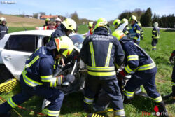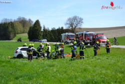 Beim PKW, der nach dem Zusammenstoß in einer angrenzenden Wiese landete, musste die Feuerwehr mit dem hydraulischen Rettungsgerät Öffnungen schaffen, um die verunfallte Lenkerin möglichst schonend zu befreien. Diese wurde anschließend vom Roten Kreuz mit unbestimmtem Verletzungsgrad ins Krankenhaus gebracht.