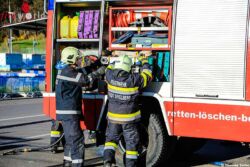 Der Übungsschwerpunkt neben der richtigen Brandbekämpfung lag diesmal in der Wasserversorgung, den 8 Strahlrohre und die vier eingesetzten Wasserwerfer, von denen jeder rund 2.400 Liter pro Minute Wasser befördert, galt es ununterbrochen mit Wasser zu versorgen, schildert der Übungseinsatzleiter Hauptbrandinspektor Gerald Stengg.