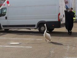 Stmk: Feuerwehr rettet einen auf der Bundesstraße stolzierenden Schwan
