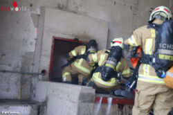 In einer Lagerhalle brach ein Brand aus. Oberste Priorität lag für die Atemschutztrupps darin, eine vermisste Person zu finden bzw. zu bergen. Zeitgleich wurde die Löschwasserversorgung aufgebaut und ein umfangreicher Löschangriff durchgeführt.