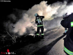 Der Brand konnte mittels des UHPS (Hochdrucklöschanlage) Ebersegg rasch unter Kontrolle gebracht werden. Mittels Erdschaufel wurde der Scheiterhaufen zerlegt und sortiert. Rüstlöschfahrzeug Kleinraming löschte die Reste mit dem Tankinhalt (2000l) ab. In Summe waren 60 Mann der drei Gemeindefeuerwehren im Einsatz.