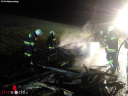 ST. URLICH (OÖ): Beim dritten Einsatz in zehn Tagen fuhr die Feuerwehren der Gemeinde St Ulrich am Samstagabend, 14. April 2018, zu einem Brand eines Scheiterhaufens nahe einem Wirtschaftsgebäude im Ebersegg aus.