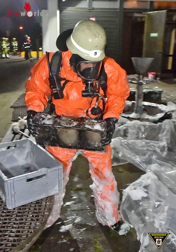 Im Untergeschoss stellten die Feuerwehrkräfte einen Brand im Batterieraum fest. Sofort wurde mit dem Alarmstichwort „Kellerbrand“ ein zweiter Löschzug, der Inspektionsdienst sowie Kräfte der Freiwilligen Feuerwehr an die Einsatzstelle beordert. Das Feuer im Batterieraum wurde bekämpft und gleichzeitig wurden die großen Blockbatterien mit Wasser gekühlt. Nachdem das Feuer im Batterieraum gelöscht war, wurden die beschädigten Batterien in Wannen aus dem Keller gebracht. Zum Schutz der Einsatzkräfte, welche aufgrund der Batteriesäure in besonderer Schutzausrüstung im Einsatz waren, wurde ein Dekontaminationsplatz aufgebaut, um eventuell verunreinigte Einsatzkräfte schnellstmöglich zu reinigen. Bei diesem Einsatz gab es keine Verletzten.