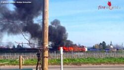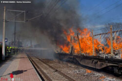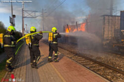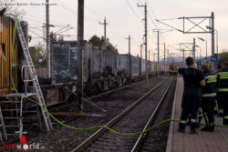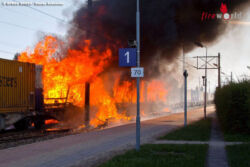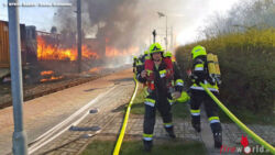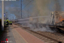 Nö: Mehrere Güterwaggons im Bahnhof Pfaffstätten lichterloh in Flammen