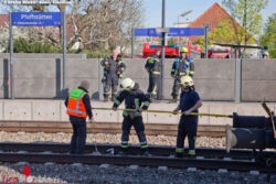 Mehre Polizeikräfte riegelten den kompletten Bahnhofsbereich ab. Ebenfalls alarmierte Rettungskräfte standen vor Ort in Bereitschaft. Über örtliche Hydranten konnte die Wasserversorgung sichergestellt werden. Im Zuge der Löscharbeiten wurde festgestellt, dass der Brand auch auf einen geschlossen 45-Fuß-Container des angrenzenden Waggons übergegriffen hatte, da aus den Entlüftungsöffnungen des Containers Brandrauch entwich. Nach Rückfragen wurde bekannt, dass auch in diesem Container Polstermöbel, Matratzen und andere Möbel geladen waren.