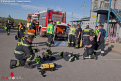 Danach begann das Entladen des Containers. Da im Inneren des Container Brandrauch gemessen wurde, konnten die direkten Entladearbeiten nur unter Umluft unabhängigem Atemschutz und Löscharbeiten durchgeführt werden. Mittels „Menschenkette“ wurden 75 m³ Containerinhalt vom Waggon über eine Gleisanlage und dem Bahnsteig in die bereitgestellten Abfallmulden händisch verbracht. Diese Arbeiten wurden von den nachalarmierten Ablösekräften der FF Baden-Stadt und Baden Weikersdorf unterstützt. Gegen ca. 22:00 Uhr waren die Arbeiten abgeschlossen und ein Großteil der Einsatzmannschaften konnte wieder abrücken.