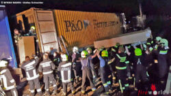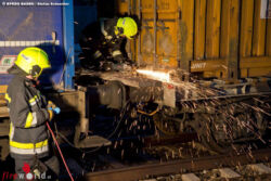 Da ein Container am Waggon durch Diebstahlsicherungen nicht so einfach zu öffnen ist, wurde entschieden, den Container mittels Trennschneidgeräte seitlich und im Dachbereich aufzuschneiden, um mit Löschlanzen die Ladung zu löschen. Die Bereitstellung einer Rettungsplattform ermöglichte dabei ein sicheres Arbeiten. Durch das lückenlose Stauen der Möbel, Vorhandensein von Polstermöbel und Matratzen in gerollter Form war der Löscheinsatz aber nicht zielführend.