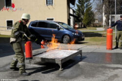 Bei der praktischen Übung mit Handfeuerlöschern konnten die jungen Feuerwehrleute echte Flammen löschen und die erlernte Theorie in die Praxis umsetzen. Ein herzlicher Dank gebührt an dieser Stelle der Firma Zerza Flüssig Gas GmbH, welche die gasbefeuerte Handfeuerlöscher-Übungsanlage kostenlos zur Verfügung stellte.