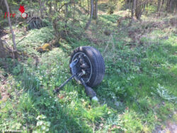 ATTNANG-PUCHHEIM (OÖ): Kurz vor 12 Uhr des 19. April 2018 kam es zu einer Kollision am Hotzberg zwischen Puchheim und Vöcklabruck. Bei der unglücklichen Berührung der beiden Fahrzeuge wurde bei dem Tesla Fahrzeug der rechte Hinterreifen komplett mit der Radaufhängung herausgerissen.