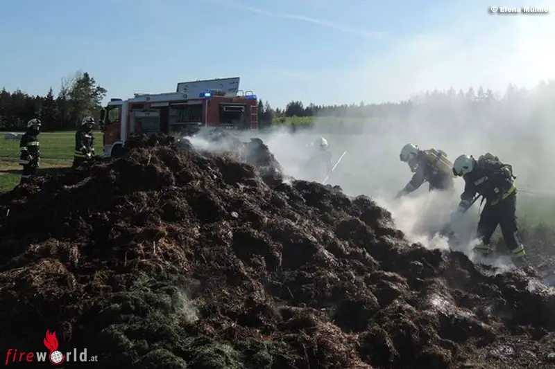 HOHENEICH (NÖ): Am Nachmittag des 20. April 2018 wurde die Freiwillige Feuerwehr Hoheneich zu einem Flurbrand auf den Schönfeldwiesen gerufen. Bereits bei der Anfahrt konnten die Einsatzkräfte feststellen, dass ein Misthaufen auf einem Feld Feuer gefangen hatte.