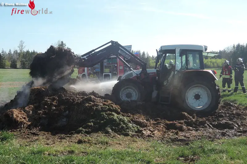 Im ersten Schritt wurden unter Atemschutz die sichtbaren Flammen abgelöscht und der Haufen aufgerissen. Der verständigte Landwirt, dessen Feld betroffen war, zerteilte in weiterer Folge das dampfende Brandgut mit seinem Traktor wodurch weitere Glutreste zum Vorschein kamen welche die Floriani löschen konnten. Nach rund einer Stunde war kein Brandrauch oder Wasserdampf mehr zu erkennen und die Einsatzkräfte beendeten ihren Einsatz.