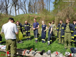Von wasserführenden Armaturen und der richtigen Verwendung von Kleinlöschgeräten über den Aufbau von Löschleitungen und Schaumangriffen bis hin zur richtigen Handhabung von Leitern, Sicherungsmaßnahmen und diverse technischen Geräten hatten die Teilnehmer/Innen allerhand zu leisten und zu lernen.