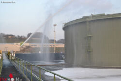 Beim Eintreffen der ersten Einsatzkräfte waren bereits alle stationären Löschsysteme in Vollbetrieb. Zwei Feuerlöschpumpen sicherten mit einer Leistung von 30.000l/min bei 10 bar Ausgangsdruck die Löschwasserversorgung. Die Brandfrüherkennung löste eine automatisierte Beschäumung des betroffenen Tanks mit 400m³ Schaum pro Minute über acht Schaumrohren aus.