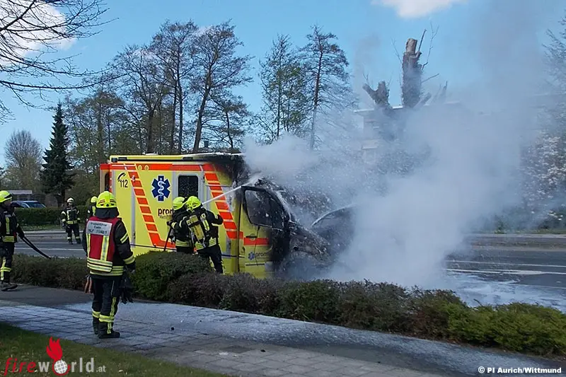 Deutschland: Brennendes Rettungsfahrzeug in Esens