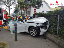 Als Folge des Aufpralls wurde die Lenkerin in ihrem Fahrzeug eingeschlossen und der zum Grundstück