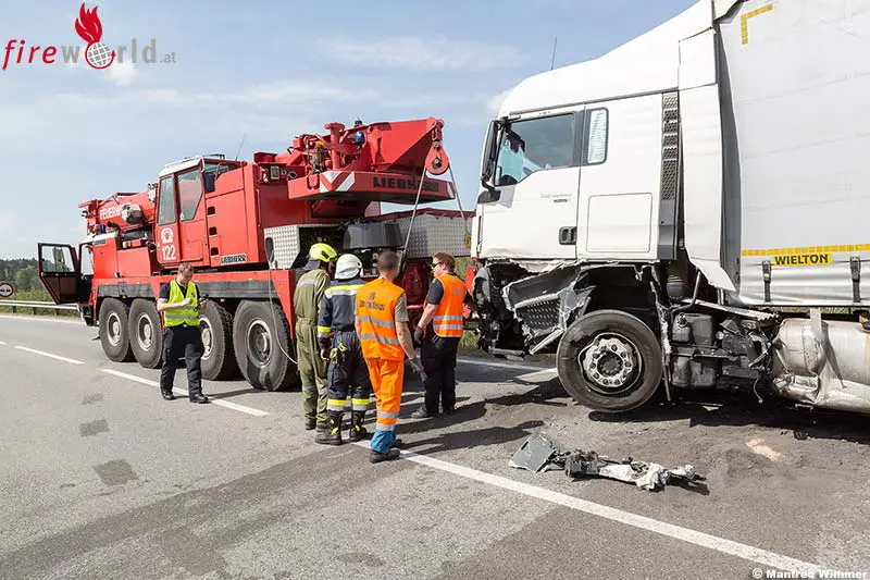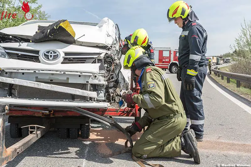 Nachdem der Pkw-Lenker ausreichend stabilisiert wurde, konnte er unter Begleitung des Notarztes in das Universitätsklinikum Krems gebracht werden. Der unbestimmten Grades verletzte Lkw-Lenker wurde ebenfalls in das Krankenhaus nach Krems gebracht. Zur Bergung des Sattelzuges wurde das in Krems stationierte Kranfahrzeug des Niederösterreichischen Landesfeuerwehrverbandes angefordert. Bis zum Eintreffen von Kran Krems wurde der Pkw mittels Abschleppachse geborgen und von der B37 entfernt. Der Lkw wurde anschließend mit der Abschleppvorrichtung vom Kranfahrzeug vorne aufgehoben und ebenfalls von der B37 verbracht.