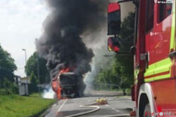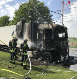 Kurz darauf schaltete sich der Motor ab. Im Motorraum war ein Feuer ausgebrochen. Als die Einheiten der Feuerwache 3 (Neuasseln) wenige Minuten später an der Einsatzstelle eintrafen, stand die Zugmaschine des Sattelzuges bereits im Vollbrand und die ersten Reifen zerplatzten unter der Wärmeeinwirkung.