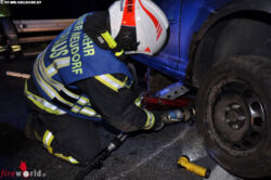 Zu Beginn der Bergungsarbeiten der Wiener Neudorfer Einsatzkräfte mussten die durch den Unfall blockierenden Fahrzeugteile unter dem Pkw mit einer hydraulischen Rettungsschere entfernt werden. Im Anschluss daran wurde das Fahrzeug mit dem Plateau des Abschleppfahrzeuges geborgen. Für die Dauer der Bergungsarbeiten musste die Abfahrt der A2 gesperrt werden.