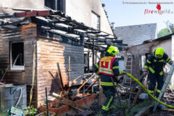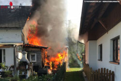 ASCHACH AN DER STEYR (OÖ): Ein Schuppenbrand hat Sonntagvormittag, 29. April 2018, in Aschach an der Steyr (Bezirk Steyr-Land) auf zwei angrenzende Wohnhäuser übergegriffen.