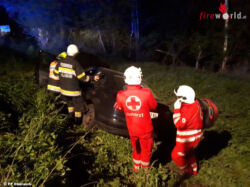 OBERAICH (STMK): Die Freiwilligen Feuerwehren Oberaich und Niklasdorf wurden am 28.03.2018 um 21:38 Uhr von der Landesleitzentrale „Florian“ Steiermark mittels Sirenenalarm zu einem technischen Einsatz mit Menschenrettung alarmiert. „VU Person eingeklemmt – PKW von Autobahn abgestürzt“ lautete der Einsatzbefehl.