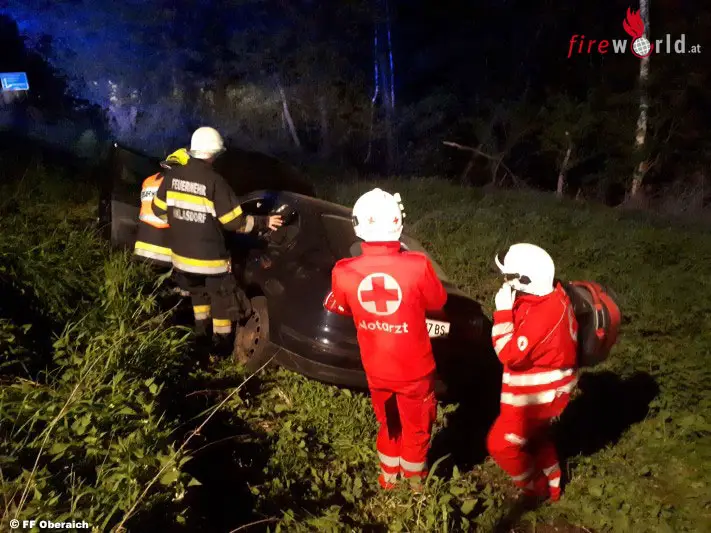 OBERAICH (STMK): Die Freiwilligen Feuerwehren Oberaich und Niklasdorf wurden am 28.03.2018 um 21:38 Uhr von der Landesleitzentrale „Florian“ Steiermark mittels Sirenenalarm zu einem technischen Einsatz mit Menschenrettung alarmiert. „VU Person eingeklemmt – PKW von Autobahn abgestürzt“ lautete der Einsatzbefehl.