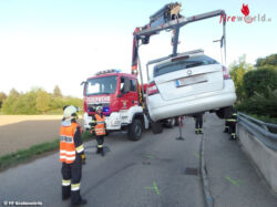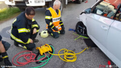 Gemeinsam mit der Polizei wurde die Unfallstelle abgesichert und nach Abschluss der Unfallursachenerhebung die Fahrzeugbergung durchgeführt. Eines der Autos war dabei so schwer beschädigt, dass dieses zunächst mittels pneumatischer Hebekissen angehoben werden musste, um ein Kettengehänge anzubringen.