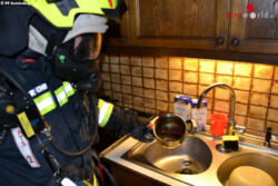 Da die Wohnung verraucht war, wurde sie ersucht, am Balkon zu bleiben und eine Person zur Betreuung wurde über eine Schiebeleiter entsendet. Parallel dazu konnte der Atemschutztrupp über das Stiegenhaus in die verrauchte Wohnung vordingen. Angebranntes Kochgut am Herd stellte sich als Brandursache heraus. Der Atemschutztrupp entfernte das Kochgut und kontrollierte die Küche mittels Wärmebildkamera auf eventuelle Glutnester. Nachdem die Wohnung belüftet war, konnte die Person durch das Stiegenhaus ins Freie gebracht und dort dem Roten Kreuz übergeben werden. In weiterer Folge wurde die Dame ins Landeskrankenhaus Schärding eingeliefert.