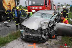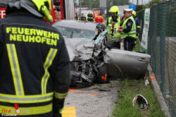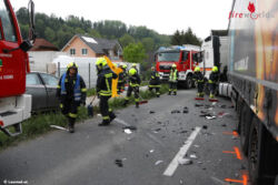 NEUHOFEN AN DER KREMS (OÖ): Ein schwerer Verkehrsunfall zwischen einem Pkw und einem Lkw in Neuhofen an der Krems (Bezirk Linz-Land) forderte Freitagnachmittag, 4. Mai 2018, eine schwerverletzte Person.