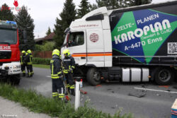 Oö: Pkw kollidiert in Neuhofen mit Lkw → Personenrettung