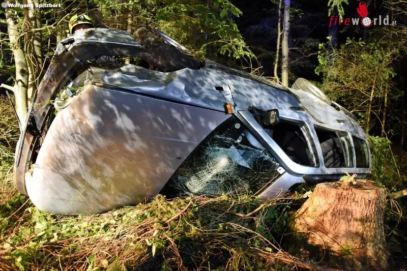 Oö: Schwerverletzter bei Verkehrsunfall bei Laakirchen → Pkw landet in Waldstück