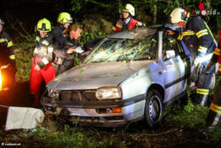Ein Pkw-Lenker kam mit seinem Auto aus bisher unbekannter Ursache auf der Gmundener Straße in Laakirchen von der Fahrbahn ab und raste in einer Kurve an der Gemeindegrenze zwischen Laakirchen und Roitham am Traunfall gerade aus über eine Verkehrsinsel in ein Waldstück. Ein nachkommender Autolenker dürfte den Unfall ersten Informationen zufolge bemerkt und die Einsatzkräfte verständigt haben. Der Verletzte war entgegen ersten Meldungen zum Glück nicht unmittelbar im Auto eingeklemmt. Er wurde nach der Rettung aus dem Fahrzeug von Notarzt und Rettungsdienst erstversorgt und anschließend ins Krankenhaus eingeliefert. Die Feuerwehr führte anschließend die Bergung des Unfallwracks durch.