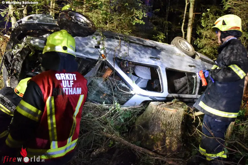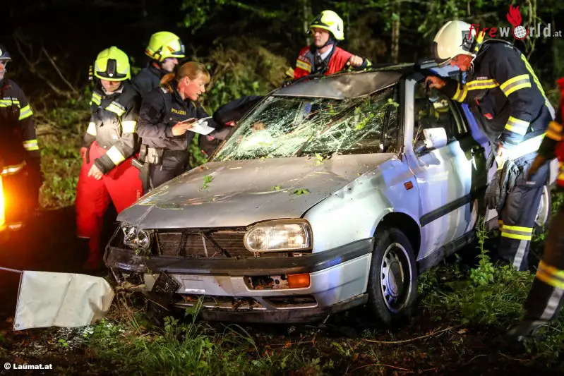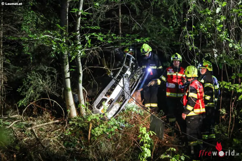 Oö: Schwerverletzter bei Verkehrsunfall bei Laakirchen → Pkw landet in Waldstück
