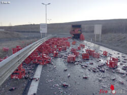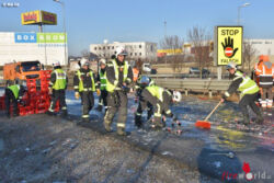 WIEN: Ein Getränkelieferant verlor gegen 8 Uhr morgens des 5. Februar 2019 einen Teil seiner Ladung in der Ausfahrt Hermann Gebauer Straße der S2, in Fahrtrichtung Gänserndorf. Aufgrund hunderter zerbrochener Getränkeflaschen und -kisten musste die Autobahnausfahrt gesperrt werden.