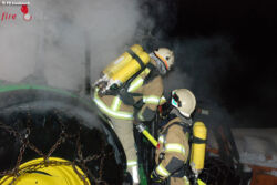 Die alarmierten Feuerwehren nahmen nach deren Eintreffen am Einsatzort umgehend die Löscharbeiten unter schwerem Atemschutz auf. Ebenso galt es von den Männern und Frauen die Einsatzstelle auszuleuchten sowie eine Verkehrsabsicherung durchzuführen. Der Brand konnte währenddessen rasch unter Kontrolle gebracht werden, sodass man das Fahrzeug letztlich noch von der Batterieversorgung trennte. Zur Sicherheit anderer Verkehrsteilnehmer wurde die Straßenmeisterei an die Einsatzstelle beordert, um den dortigen Straßenverlauf durch das Ausbringen von Streusalz entsprechend zu sichern.