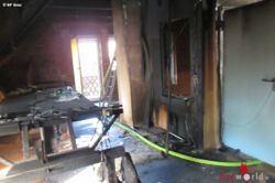 Sofort wurden weitere Kräfte lt. Ausrückeordnung nachalarmiert. Nach Eintreffen der ersten Kräfte wurde festgestellt, dass im Bereich des Dachfirstes Rauch austritt und zu dieser Zeit war noch nicht bekannt, ob sich noch Personen im Gebäude aufhielten. Umgehend wurde ein C-Rohr unter schwerem Atemschutz in das Gebäude zur Personensuche und Brandbekämpfung vorgenommen sowie ein weiteres Rohr im Außenangriff vorbereitet. Kurz darauf konnte der Brand durch den Atemschutztrupp im Dachgeschoß entdeckt und gelöscht werden.