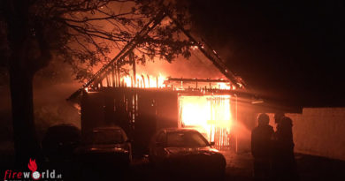 geschätzt. Die Berufsfeuerwehr stand unter der Einsatzleitung von BO Ing. Goldner mit sechs Fahrzeugen und 25 Mann mehrere Stunden im Einsatz.