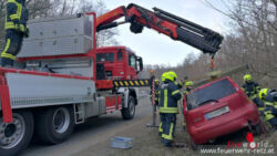 Das Fahrzeug geriet auf die Gegenfahrbahn, überschlug sich und kam am Straßenrand zum Stehen. Beim Eintreffen am Einsatzort sicherte die Polizei bereits die Einsatzstelle ab und das Rote Kreuz betreute die anwesenden Personen. Das Unfallfahrzeug wurde mit dem Kran des Wechselladefahrzeuges (WLFA-K) aufgeladen und auf einen Abstellplatz verbracht.