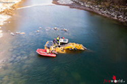 LINZ (OÖ): Unverletzt hat ein Baggerfahrer am Mittwoch, 13. Februar 2019, einen Zwischenfall beim Traunkraftwerk nahe des Linzer Franzosenhauswegs überstanden. Schon seit Wochen werden dort mit schwerem Gerät Steine verlegt, um das Flussbett wieder herzustellen.
