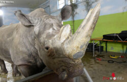Durch diese Maßnahme war es möglich, den Koloss bei Bedarf wieder anzuheben und in die richtige Lage zu bringen. Wegen der Erkrankung hatte der 45-jährige Nashornbulle, mit dem Namen Tsavo, in den letzten zwei Monaten bereits 300 kg abgenommen. Abschließend unterstützten die Feuerwehrmänner noch beim Öffnen des Mauls, um auch die Zähne kontrollieren zu können. Er ist einer der wenigen und ältesten, vom Aussterben bedrohten, Breitmaulnashörnern weltweit.