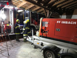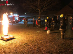 Nö: Feuerwehr Imbach trainiert am Fire Trainer und Fahrzeug