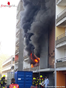 FRANKFURT AM MAIN (DEUTSCHLAND): Gegen 15:00 Uhr wurde die Feuerwehr Frankfurt am Main am 17. Februar 2019 nach Nieder-Eschbach alarmiert. Im 1. OG eines Wohnhochhauses war auf einem Balkon ein Brand entstanden, der sich ins Wohnungsinnere ausgebreitet hatte.