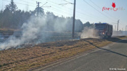 Sofort wurde mittels der – für diese Art von Bränden speziellen Straßenwaschanlage – Löscheinrichtung an der Front des Fahrzeuges der Bahndamm abgelöscht. Mit der Schnellangriffseinrichtung am Heck des Hilfeleistungsfahrzeuges wurden Glutnester bekämpft. Nach knapp 20 Minuten Einsatz konnten die Kameraden wieder ins Feuerwehrhaus einrücken und die Einsatzbereitschaft herstellen.