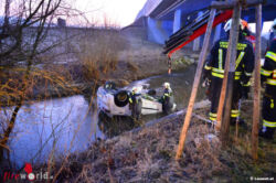 UNTERWEITERSDORF (OÖ): Bei glatten Fahrbahnverhältnissen kam bei Unterweitersdorf (Bezirk Freistadt) ein Pkw ins Schleudern und überschlug sich eine Böschung hinab, wodurch das Auto auf dem Dach im angrenzenden Bach zu liegen kam.