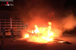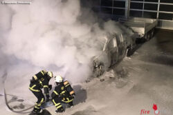 Anwohner hatten den Brand bemerkt und einen Notruf bei der Feuer- und Rettungsleitstelle des Märkischen Kreises abgesetzt. Mit einem Löschrohr unter Atemschutz wurde der Brand abgelöscht. Trotz Nähe zur Werkstatthalle blieb der Brandschaden auf das Fahrzeug begrenzt. Im Einsatz befanden sich die Kräfte der Feuer- und Rettungswache. Zu Brandursache und Höhe des bei dem Brand entstandenen Sachschadens kann die Feuerwehr keine Auskunft erteilen.