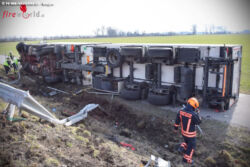 Nö: Drei Verletzte und umgestürzter Lkw-Zug bei Kollision in Wiener Neudorf