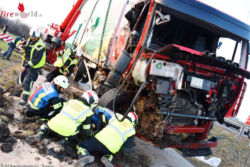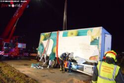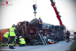 Nach Ankunft des Mödlinger Kranfahrzeuges wurde mit der mehrstündigen Bergung des mit Lebensmitteln beladenen Lkw-Zug begonnen. Mehrere Hebevorgänge erfolgten bis das Zugfahrzeug sowie dessen Anhänger durch eine Fachfirma von der Unfallstelle abtransportiert werden konnte.