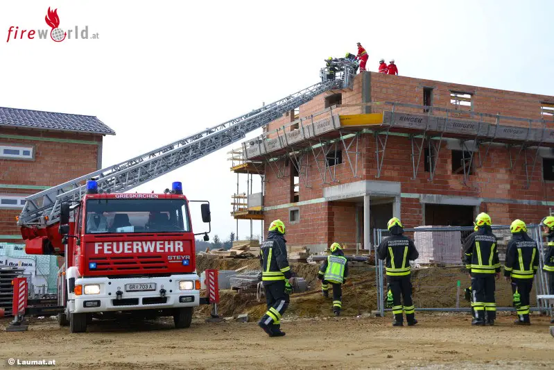 MEGGENHOFEN (OÖ): Ein verletzte Arbeiter musste Donnerstagvormittag, 21. Februar 2019, in Meggenhofen (Bezirk Grieskirchen) durch die Feuerwehr von einem Rohbau gerettet werden.