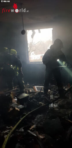 Beim Eintreffen der Berufsfeuerwehr Wien schlugen bereits Flammen aus einem Fenster. Umgehend wurden zwei Löschleitungen für einen umfassenden Löschangriff vorbereitet. Unter Atemschutz drangen die Feuerwehrleute mit einer der Löschleitungen in die Brandwohnung ein und fanden dabei einen im Rollstuhl sitzenden Mann. Er wurde in einen sicheren Bereich gebracht und bis zur Übergabe an den Rettungsdienst von einem Feuerwehrtrupp reanimiert.