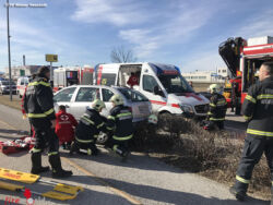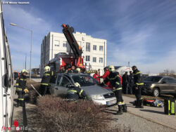 Die ersteintreffende Mannschaft begann sofort mit Stabilisierungsmaßnahmen am Fahrzeug und hob mit einem Wagenheber das Fahrzeug so weit an, dass es nicht mehr auf der Person stand. Kurz darauf traf das schwere Rüstfahrzeug und ein Hilfeleistungsfahrzeug am Einsatzort ein. Sofort wurde das Fahrzeug mit dem Kran des schweren Rüstfahrzeuges angehoben, sodass der ebenfalls kurze Zeit später eingetroffene Notarzt die Frau behandeln konnte und weitere Anweisungen zur schonenden Rettung geben konnte. Das Fahrzeug wurde von der Dame gehoben und die Frau wurde vom Roten Kreuz mit Verletzungen unbekannten Grades ins Landesklinikum Wiener Neustadt gebracht.